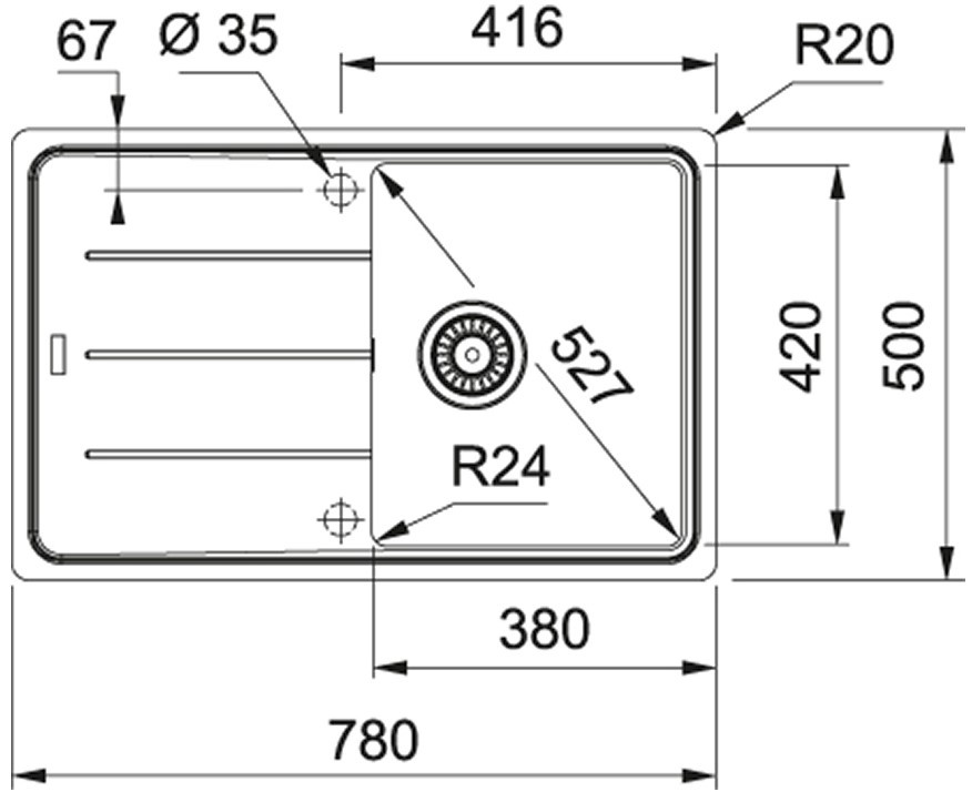 Размер мойки780х500 мм