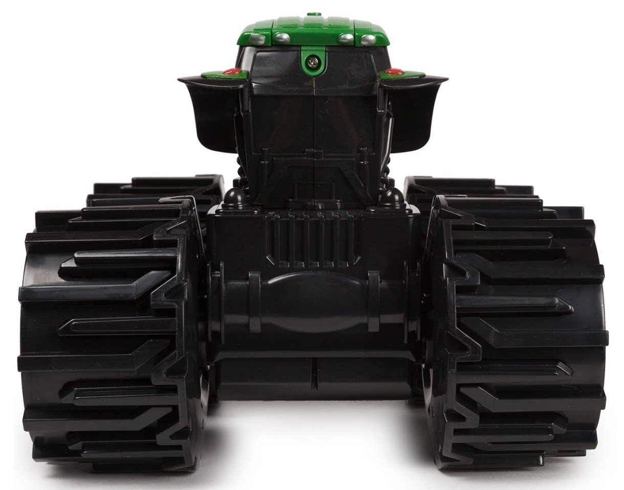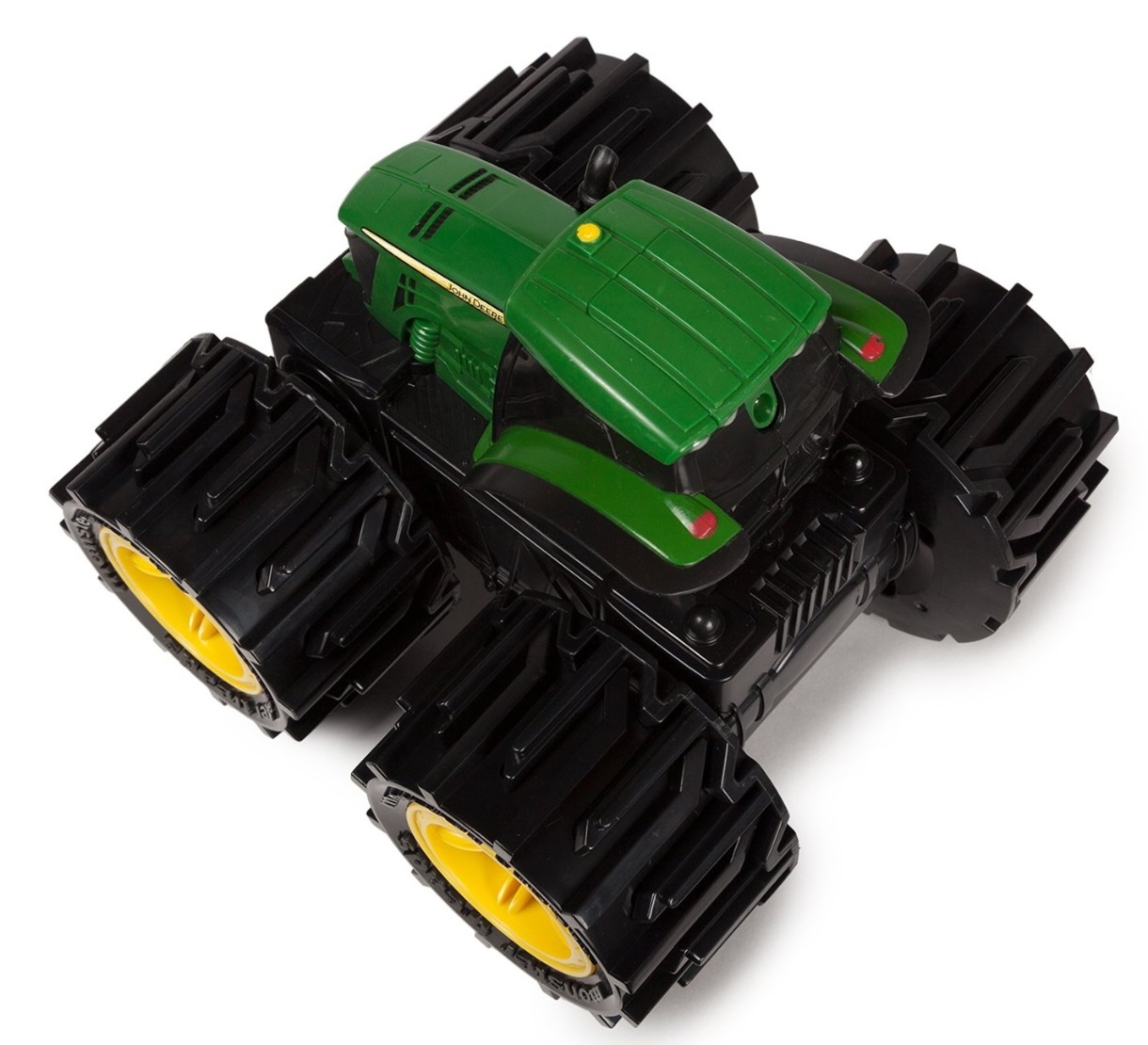 Игрушечный трактор TOMY Monster Treads с увеличенными колесами является уменьшенной копией техники John Deere.