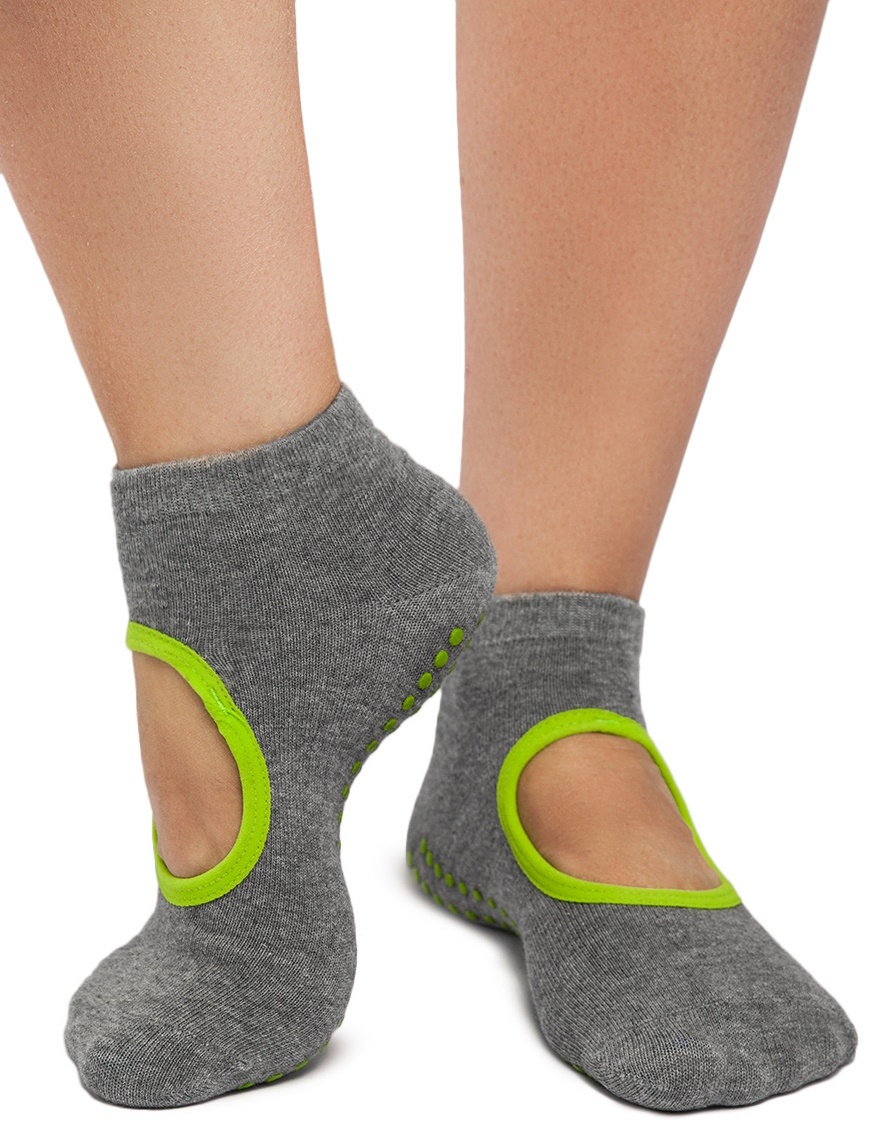 Носки для йоги YOGA SOCKS с открытым верхом предназначены для занятий йогой и пилатесом дома и в студии. Противоскользящие ПВХ точки в области стопы обеспечивают надежное сцепление с полом или ковриком, повышая баланс и устойчивость поз.