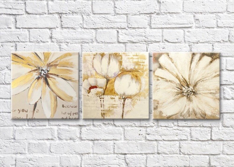 Картина Gallerix Triptych of beige and gold flowers drawing (500682)