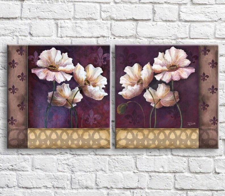 Картина Magic Color White poppies in oil on a Burgundy background, diptych (3467668)