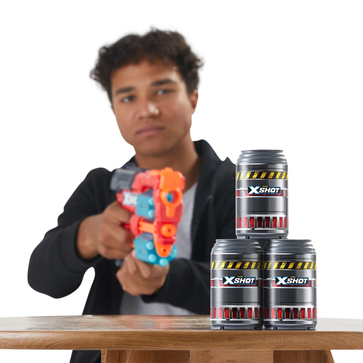В наборе2 бластера, 48 стрел, 5 банки