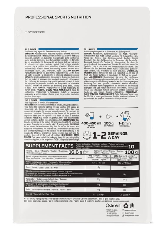 OstroVit Gainer это высококачественная углеводно-белковая добавка. Выпускается в порошковой форме с семью различными вкусами. Это добавка, созданная как для спортсменов, так и для физически активных людей, которым необходимо восполнить калории и ценные макроэлементы в своем ежедневном рационе.