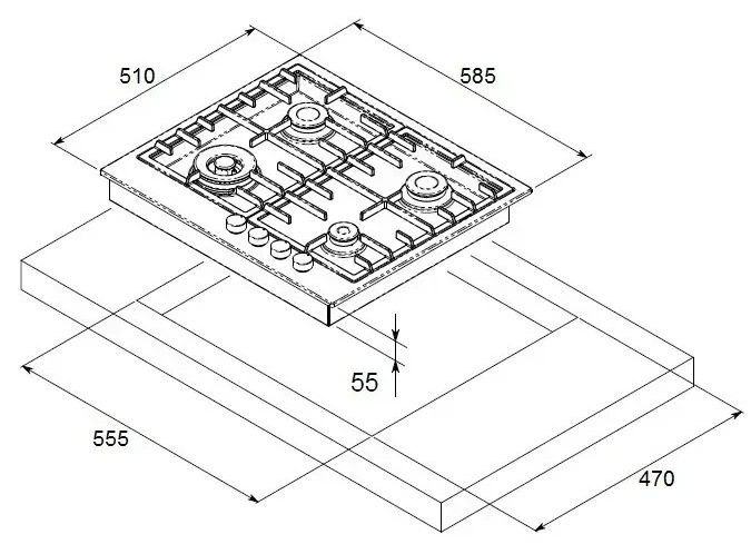 Размеры для встраивания (ШхГ)55.5x47 см