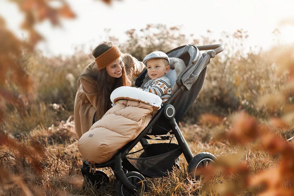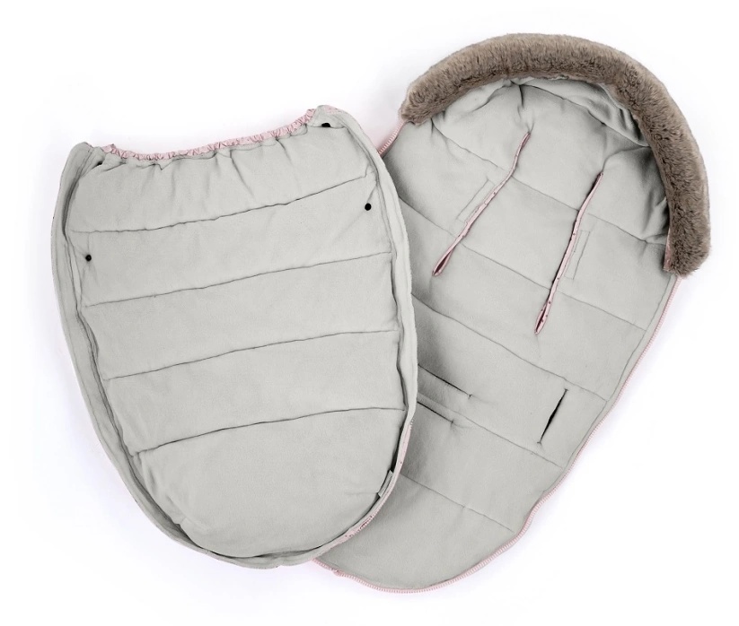 Молнии сходятся внизу, расстегивая их, создается практичное отверстие для ножек ребенка. Сзади есть сложенный карман, который предотвращает соскальзывание конверта.
