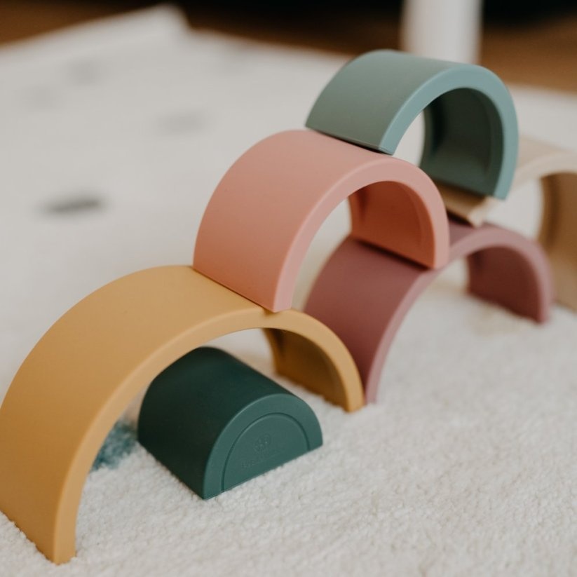 Сборка элементов или накладывание одной арки на другую — отличное упражнение для маленьких ручек.