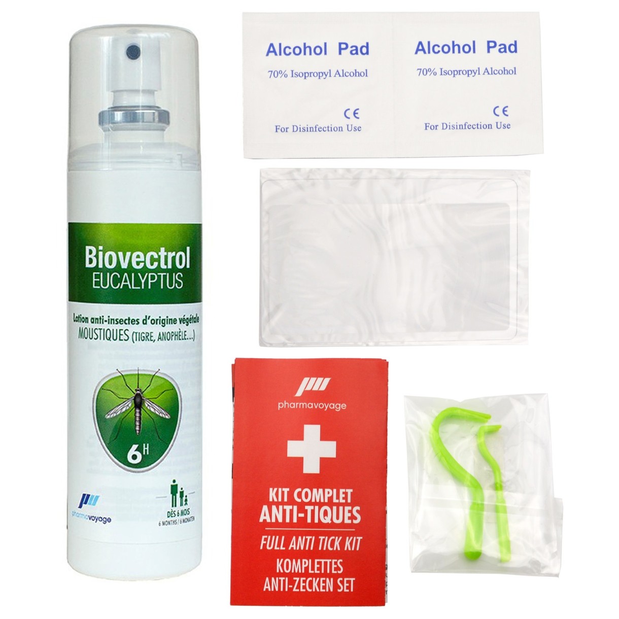 Комплектациятравяной противоклещевой спрей, два пинцета разного размера, увеличительное стекло, две спиртовые подушечки