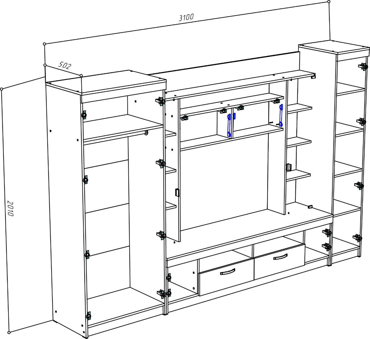 Гостиная ML-Mobila ML-2 Премьера 15/3100 Дуб Крафт Белый/Антрацит