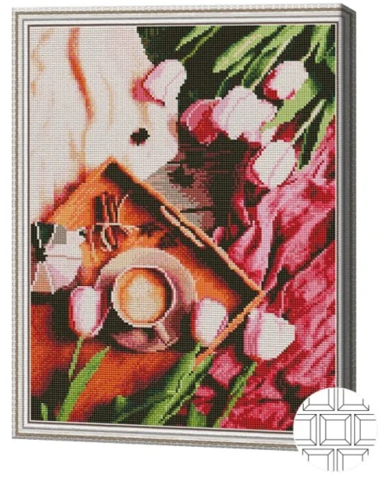 Алмазная картина по номерам Art Gallery Premium Тюльпаны и кофе 40x50cm (QB206039)