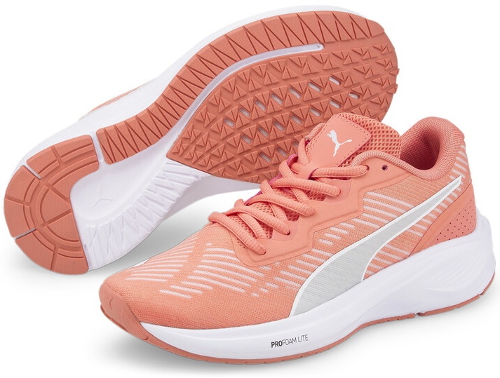 На боковой стороне модели расположен отличительный знак PUMA Formstrip — одновременно и стильный брендинг, и дополнительный элемент боковой поддержки. Резиновая подошва Aviator Profoam Sky Carnation выделяется высокими эксплуатационными характеристиками.