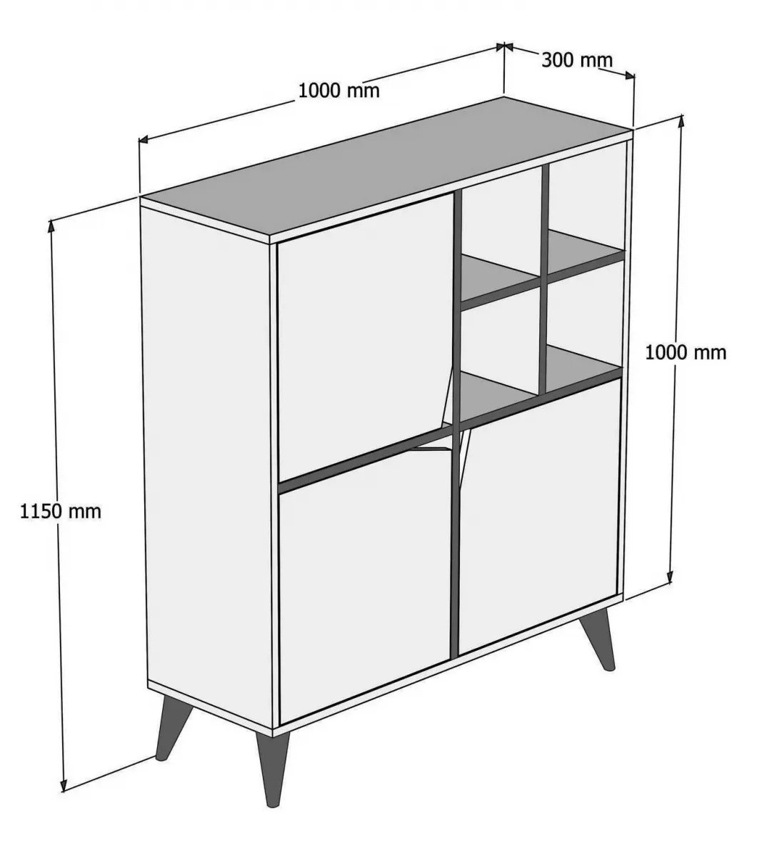 Беспокоитесь о нехватке места на полу? Наша многофункциональная комода предназначена для крепления к стене, экономя ценное пространство на полу, при этом предоставляя обширное место для хранения. Высота ножек 15 см добавляет элегантности и обеспечивает устойчивость, что делает её идеальной для любой комнаты, большой или маленькой.