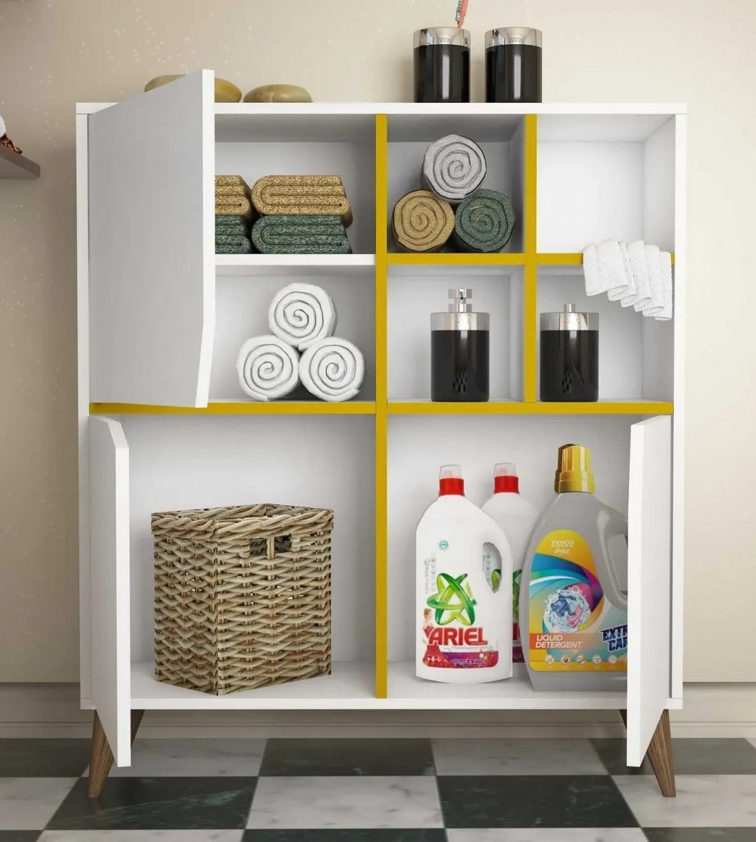 Беспокоитесь о нехватке места на полу? Наша многофункциональная комода предназначена для крепления к стене, экономя ценное пространство на полу, при этом предоставляя обширное место для хранения. Высота ножек 15 см добавляет элегантности и обеспечивает устойчивость, что делает её идеальной для любой комнаты, большой или маленькой.
