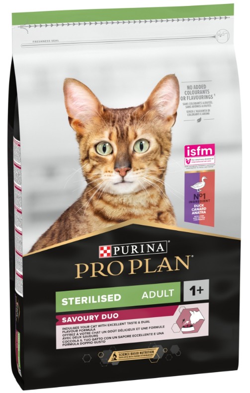 Корм PRO PLAN Sterilised с мясом утки в качестве основного ингредиента — это полнорационное сбалансированное питание с высокими вкусовыми характеристиками, обеспечивающее взрослую кошку всеми необходимыми питательными веществами, включая витамины и минеральные вещества.