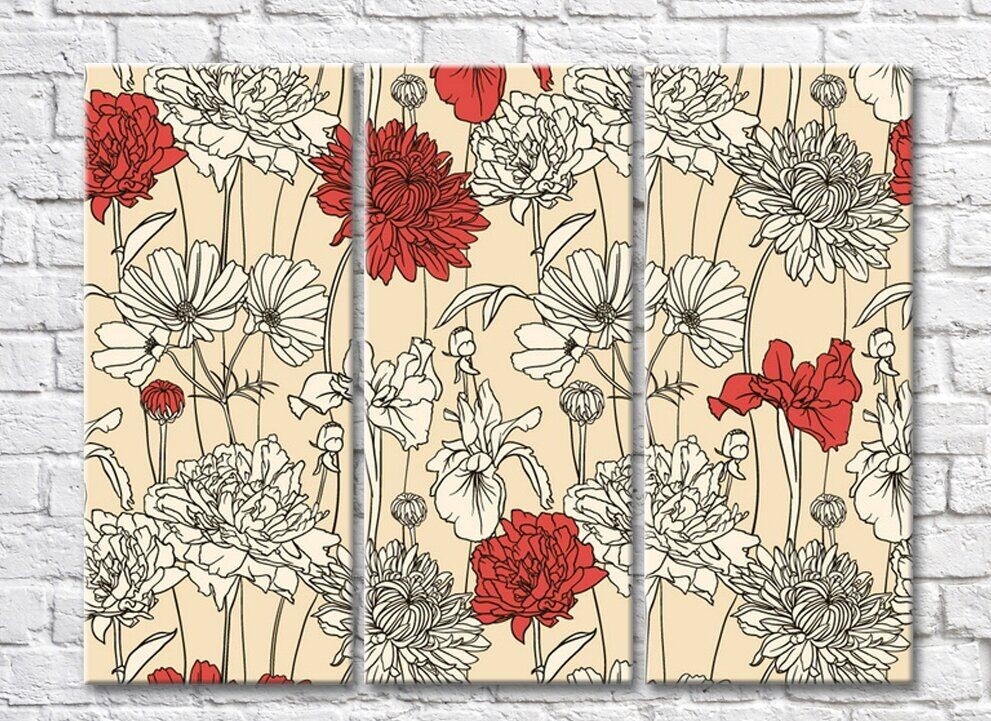 Картина Gallerix Triptych of white and red flowers on a beige background (500684)