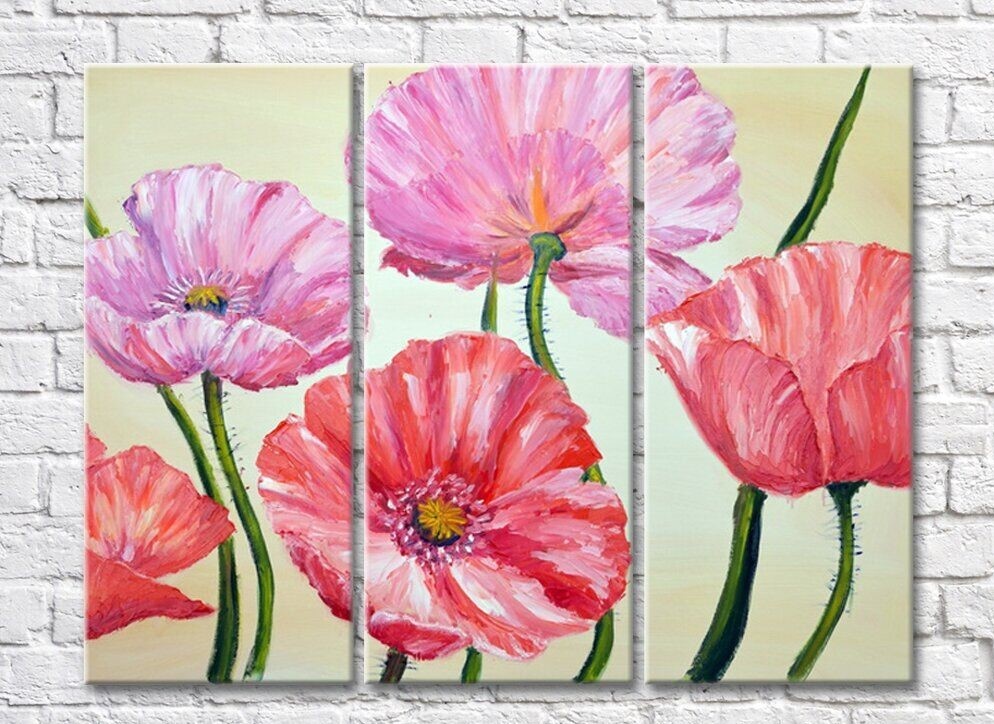 Картина Gallerix Pink and red poppies on a beige background (500580)