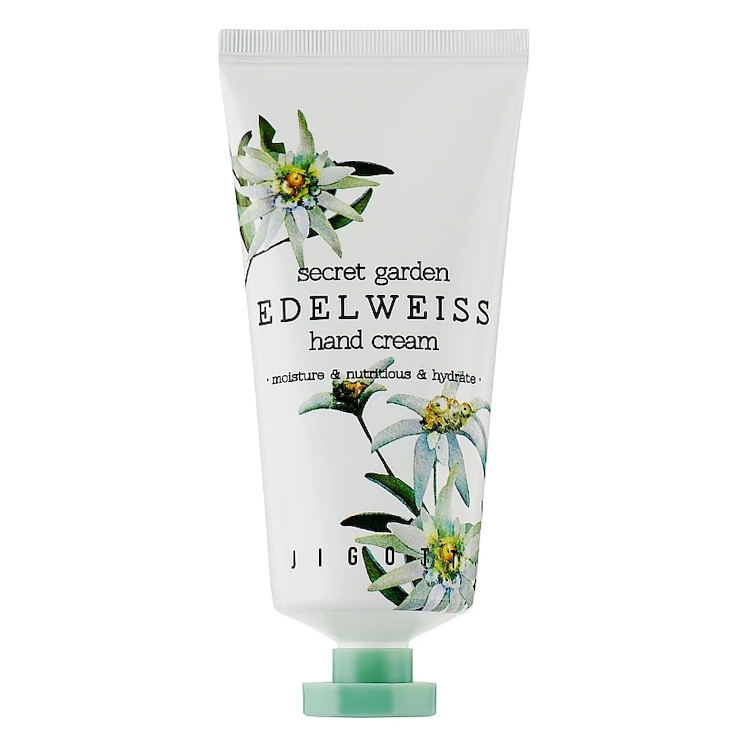 Jigott Secret Garden Edelweiss Hand Cream - Элегантный аромат окутывает ваши руки, и удивительная увлажняющая сила эдельвейса сохраняет вашу кожу влажной и гладкой. Этот крем для рук содержит экстракт леонтоподиума альпинума (0,01%) и другие экстракты растений, которые увлажняют и смягчают огрубевшую кожу рук.