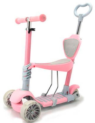 Модель 3в1 –– это самокат с родительской ручкой – что особенно удобно для прогулок с ребенком. В таком случае вы можете контролировать вектор и скорость движения в комфортных для себя условиях. Передние колеса светятся во время катания. Регулировка по высоте руля на 3 положения, где, самый минимальный от платформы 50 см, а максимальная 70 см.Самокат для ребенка выдерживает вес до 45 кг.