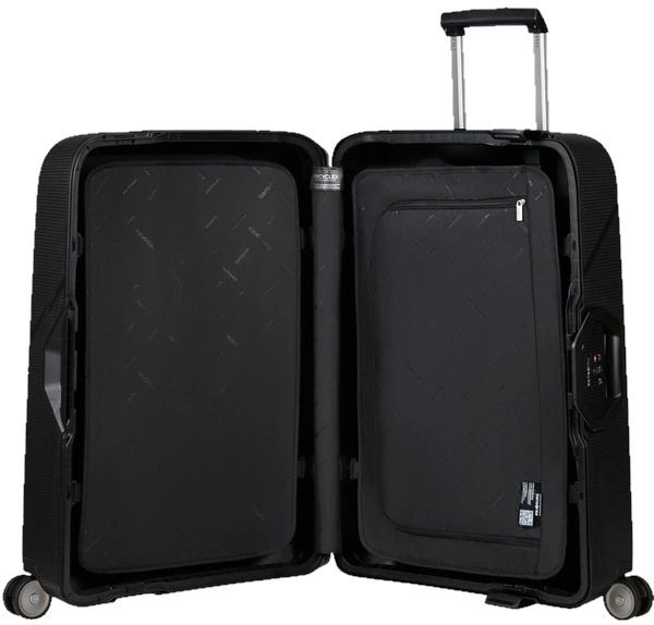 Чемодан Samsonite производится из самого совершенного материала для производства багажа на настоящее время. Это высокомолекулярный полипропилен. Ударопрочный, гибкий, упругий. Коэффициент растяжения этого уникального материала достигает 300%, этим и объясняется его выносливость. Есть еще один приятный момент для неравнодушных к экологии клиентов и нас! В производстве использованы переработанные пластиковые бутылки и это здорово!