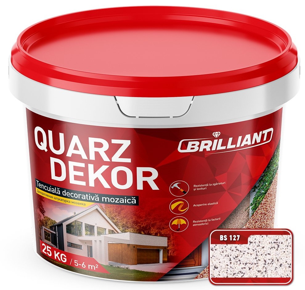 QUARZ DEKOR — готовая к применению декоративная штукатурка под видом цветного камня. Содержит акриловый полимер, кварцевую крошку, реологические и модифицирующие добавки.