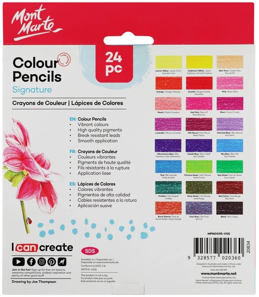 Насыщенные и яркие цветные карандаши Essential Colors от бренда Mont Marte соответствуют очень высоким стандартам качества. Богатая и бархатистая текстура 24 пёстрых цветов. Идеально подходят для начинающих и студентов.