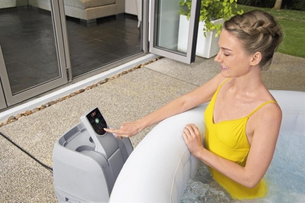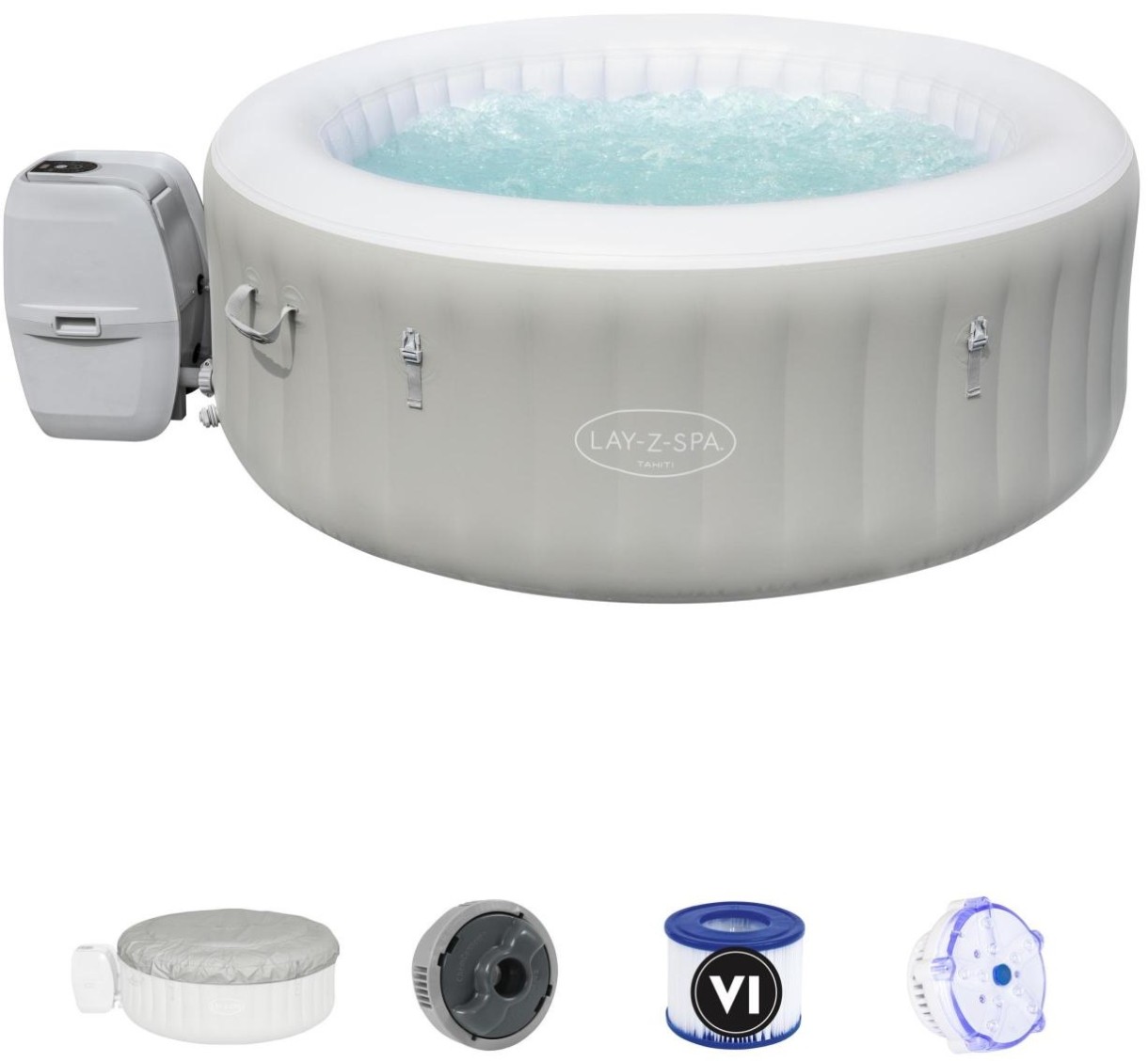СПА-бассейн Tahiti AirJet по форме круглый, вместительный, рассчитан на 2-4 человек. Цвет внешних стенок чаши — светло-серый. Есть мягкий пол, функция аэромассажа, фильтрация воды и водонагреватель. Управление осуществляется с помощью кнопок на панели, размещенной на электрическом насосе. На ЖК-дисплее наглядно отображаются рабочие параметры. С помощью таймера можно задавать удобное время запуска программ. Модель 60007 BW можно использовать как в помещении, так и на улице, благодаря функции, предотвращающей замерзание воды.