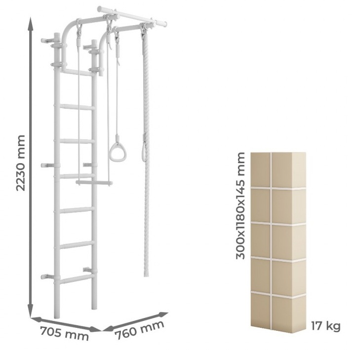 Шведская стенка с регулируемым турником заменяет собой целый спортивный зал, при этом не занимая много места у вас дома. Универсальный тренажер — на нем можно выполнять упражнения для детей и взрослых на растяжку, все группы мышц рук и ног, пресса и спины, развивать тонус, силу и выносливость, в любую погоду и не выходя из квартиры.