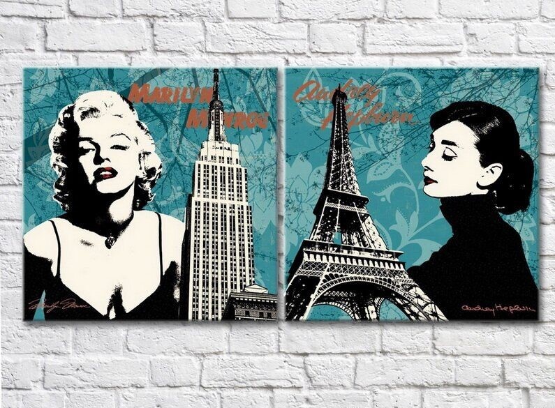Картина ArtPoster Audrey Hepburn and Marilyn Monroe against the backdrop of the Eiffel Tower and Empire Stat (3460050)
