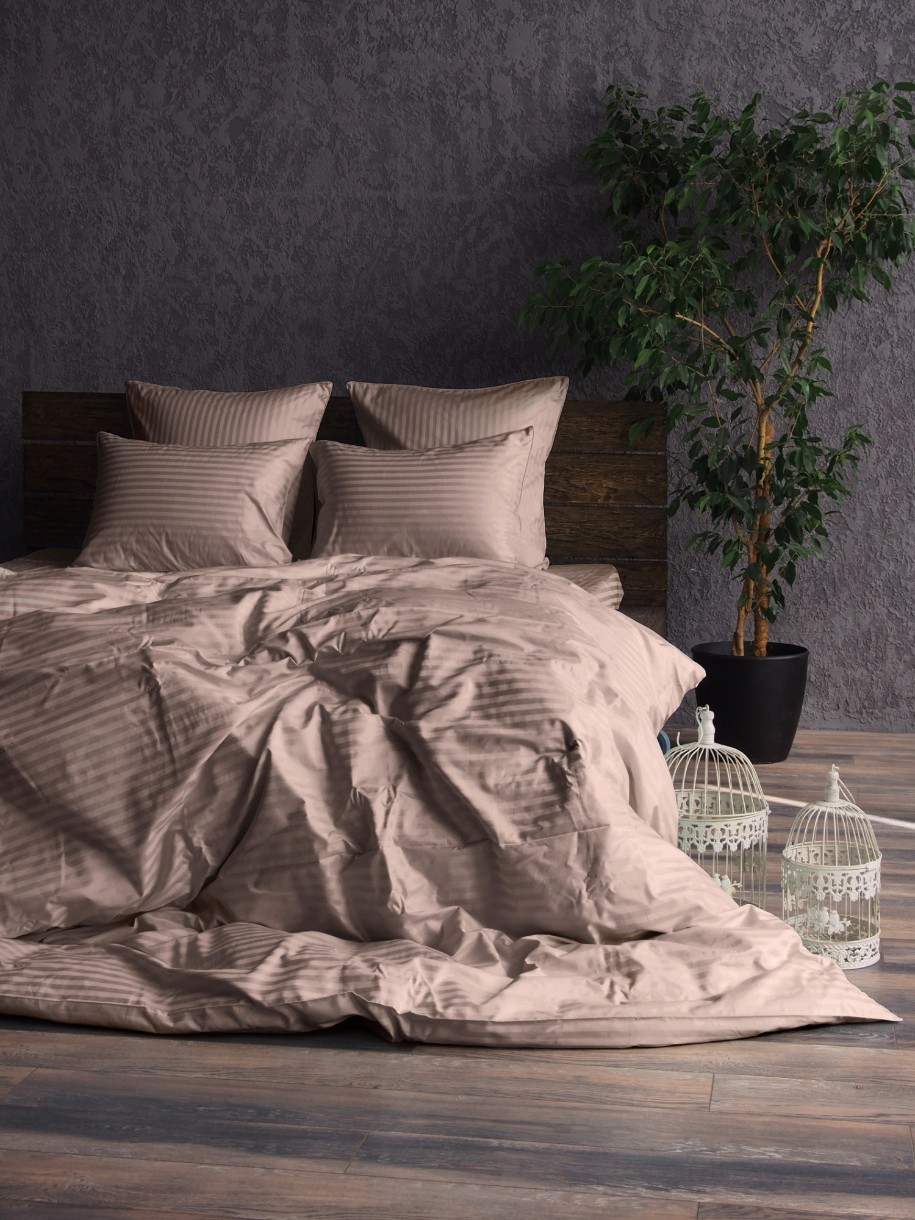 Постельное бельё Cottony Satin de Lux Tip Hotelier Stripe Light Brown 1 (210701)