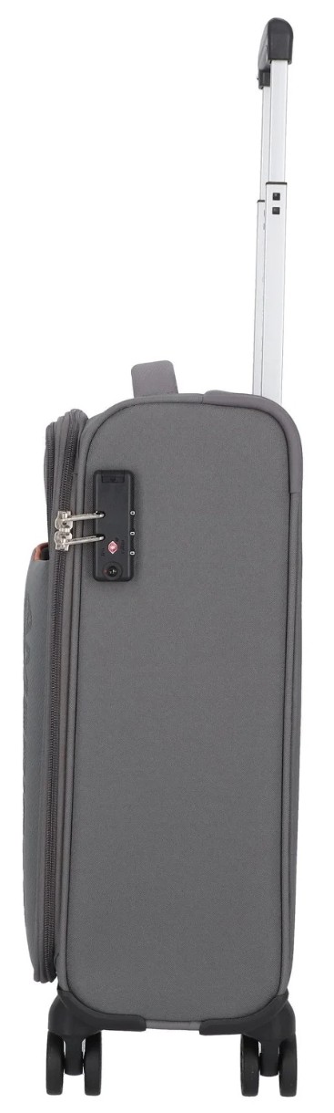 Четыре двойных поворотных колеса с вращением на 360° обеспечивают плавное и манёвренное передвижение в любом направлении. Выдвижная телескопическая ручка фиксируется в нескольких положениях, позволяя подобрать удобную высоту. Встроенный кодовый замок гарантирует дополнительную безопасность во время поездок.