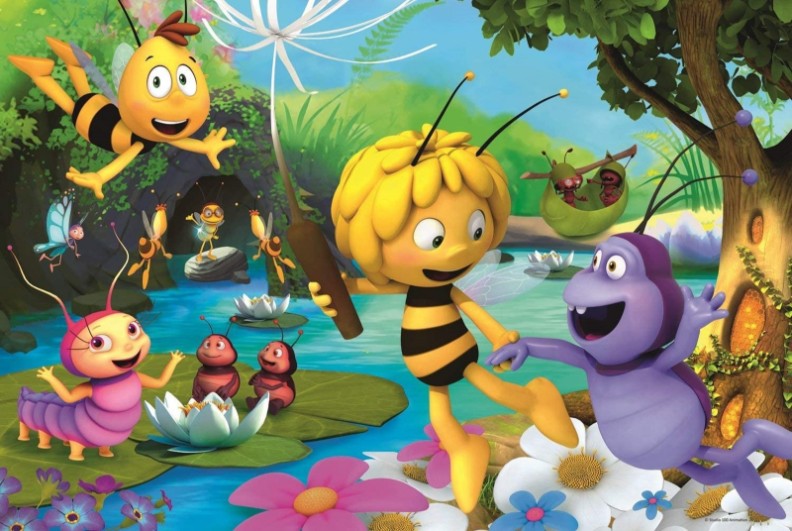 Пазлы на 100 элементов с изображением трудолюбивой Пчелки Майи и ее друзей из популярного австралийско-немецкого анимационного фильма "Пчелка Майя". В собранном виде размер картинки составляет 41*28 см. Высокое качество, насыщенность цветов и безопасность при собирании пазлов обеспечивает специальный каландрированный картон, который отражает свет и покрыт экологическими красками.