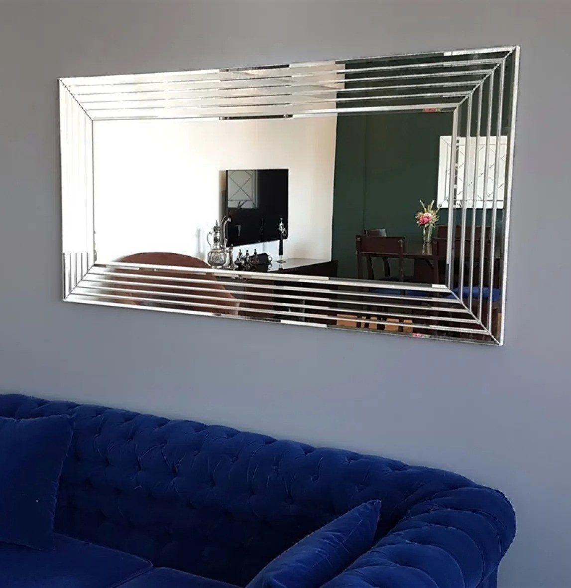 Улучшите атмосферу комнаты с этим современным и стильным зеркалом. Его изысканный дизайн добавляет чувство стиля и утонченности любому пространству, превращая его в центральный элемент, а не просто функциональный предмет.