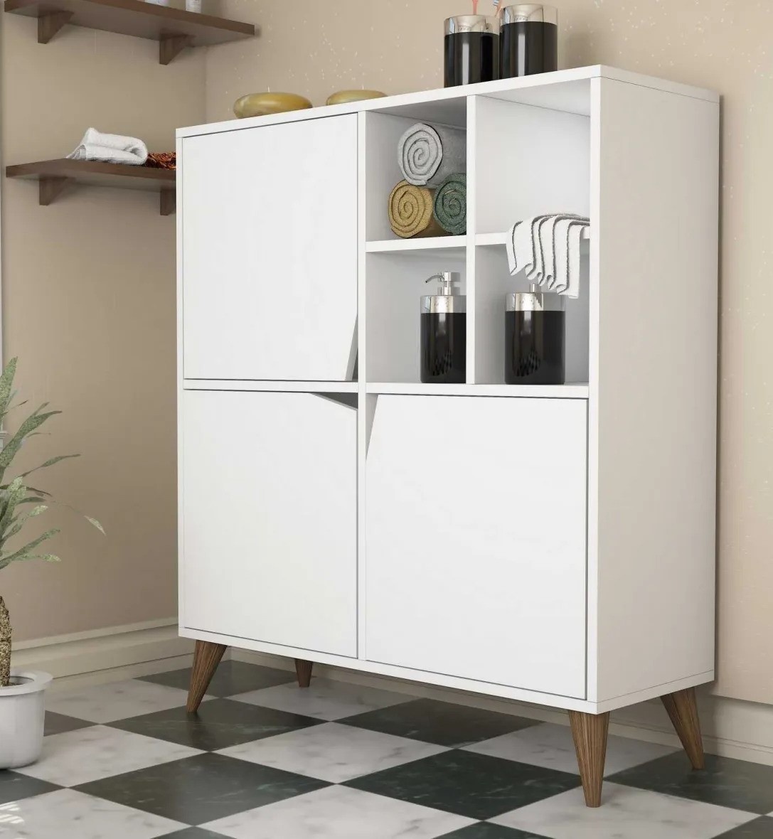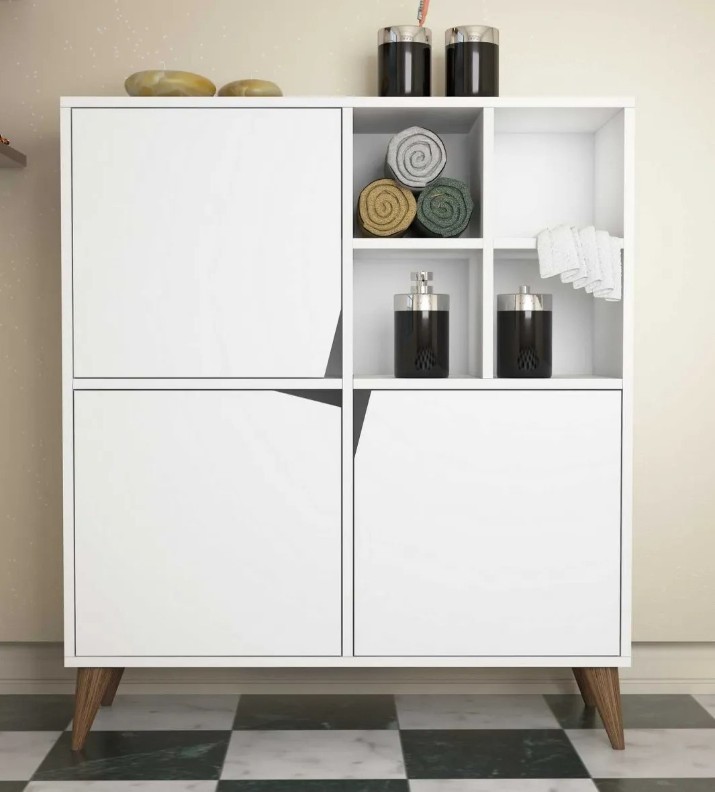 Беспокоитесь о нехватке места на полу? Наша многофункциональная комода предназначена для крепления к стене, экономя ценное пространство на полу, при этом предоставляя обширное место для хранения. Высота ножек 15 см добавляет элегантности и обеспечивает устойчивость, что делает её идеальной для любой комнаты, большой или маленькой.