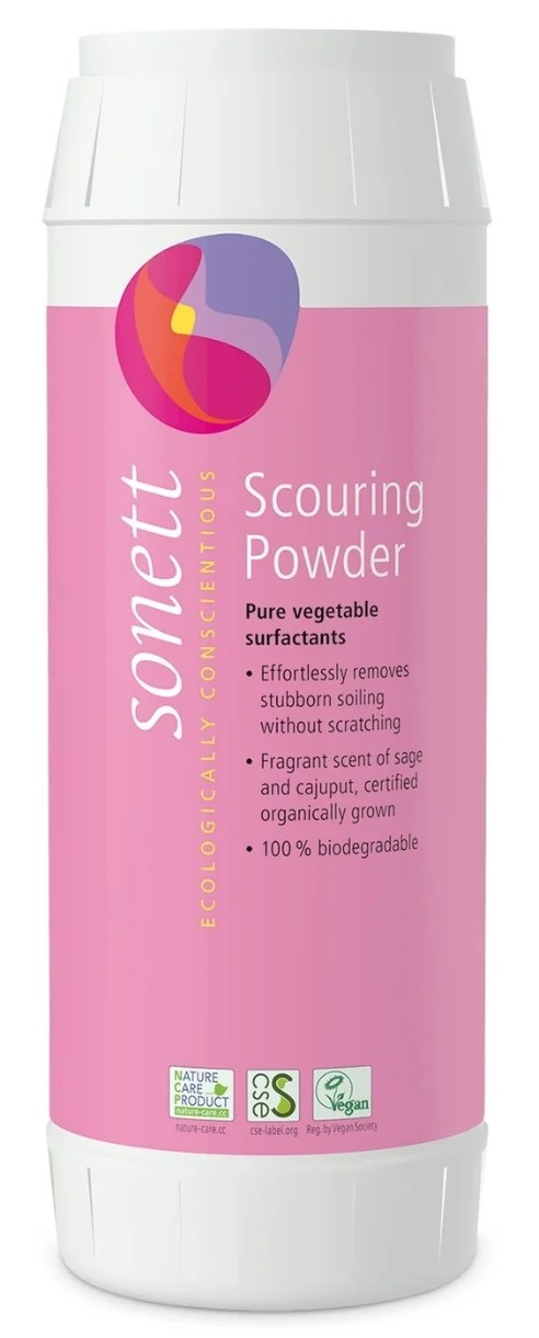 Абразивная чистящая пудра Sonett 450 г- экологичное средство для удаления стойкой грязи, жира, пригоревших остатков пищи и нагара с различных поверхностей. Она эффективно очищает нержавеющую сталь, керамику, стекло, плитку и другие твёрдые поверхности, не царапая чувствительные материалы. Формула на основе натуральной пемзы, растительного мыла и чистящих компонентов обеспечивает глубокую, но деликатную очистку без агрессивных химикатов. Продукт биоразлагаем и безопасен для использования в быту.