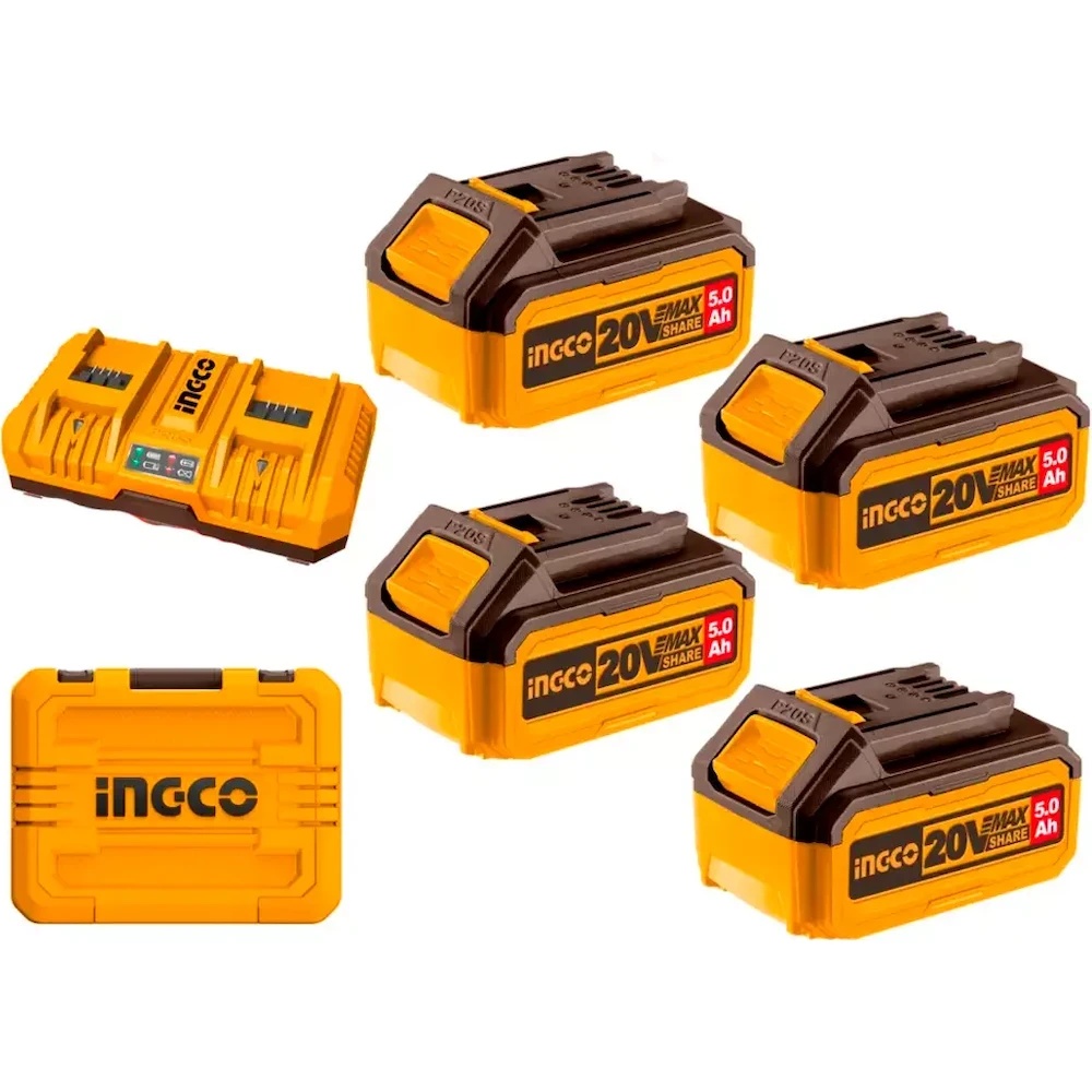 Набор 4 аккумулятора 20V 5.0Ah + двойное зарядное устройство INGCO – для инструментов серии P20S ⚡