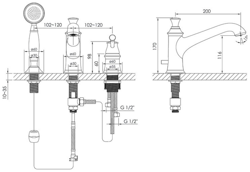 Смеситель для ванны Imprese Podzima Ledove ZMK01170105 фото №2 — интернет-магазин Desire.md