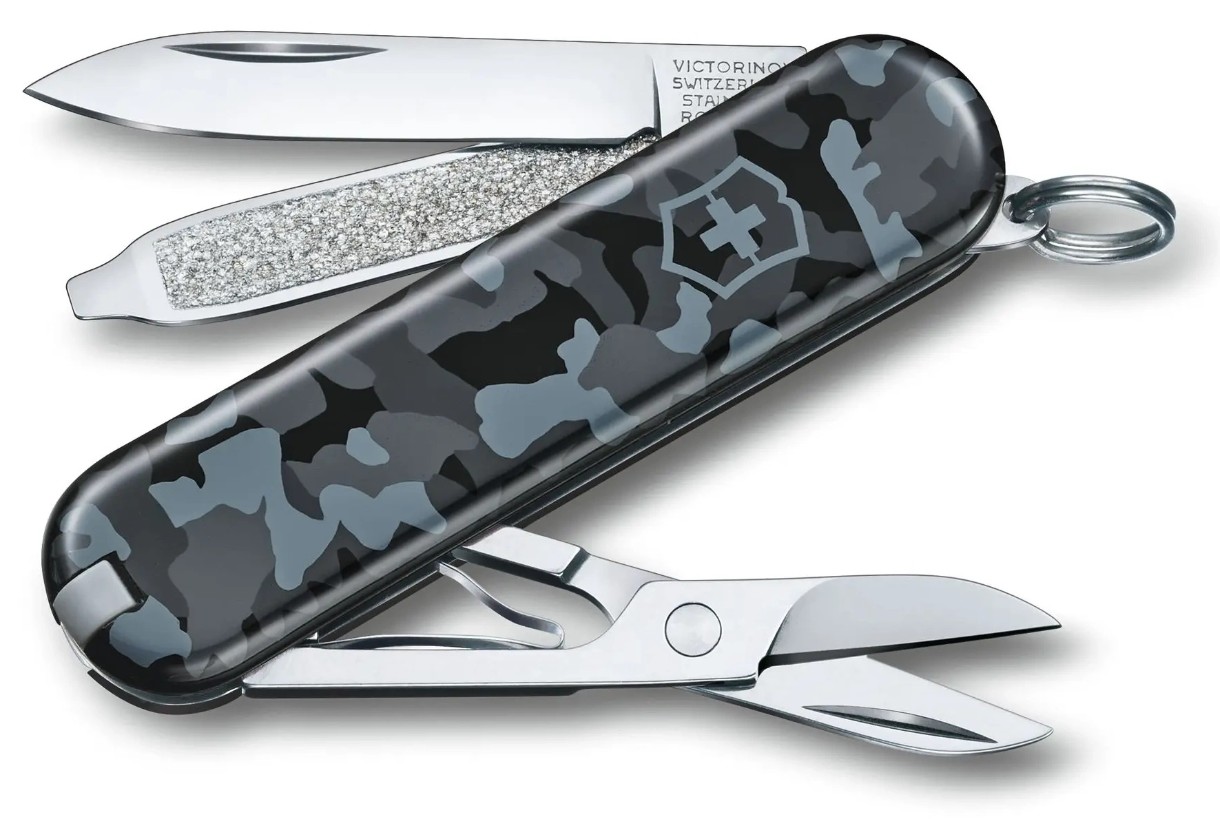 Некоторое время назад компания Victorinox начала расширять гамму оттенков «камуфляж». На сегодня, кроме традиционного цвета уже присутствует песчаный камуфляж — Desert Camouflage. С конца 2018 года доступен новый цвет — Navy Camouflage.