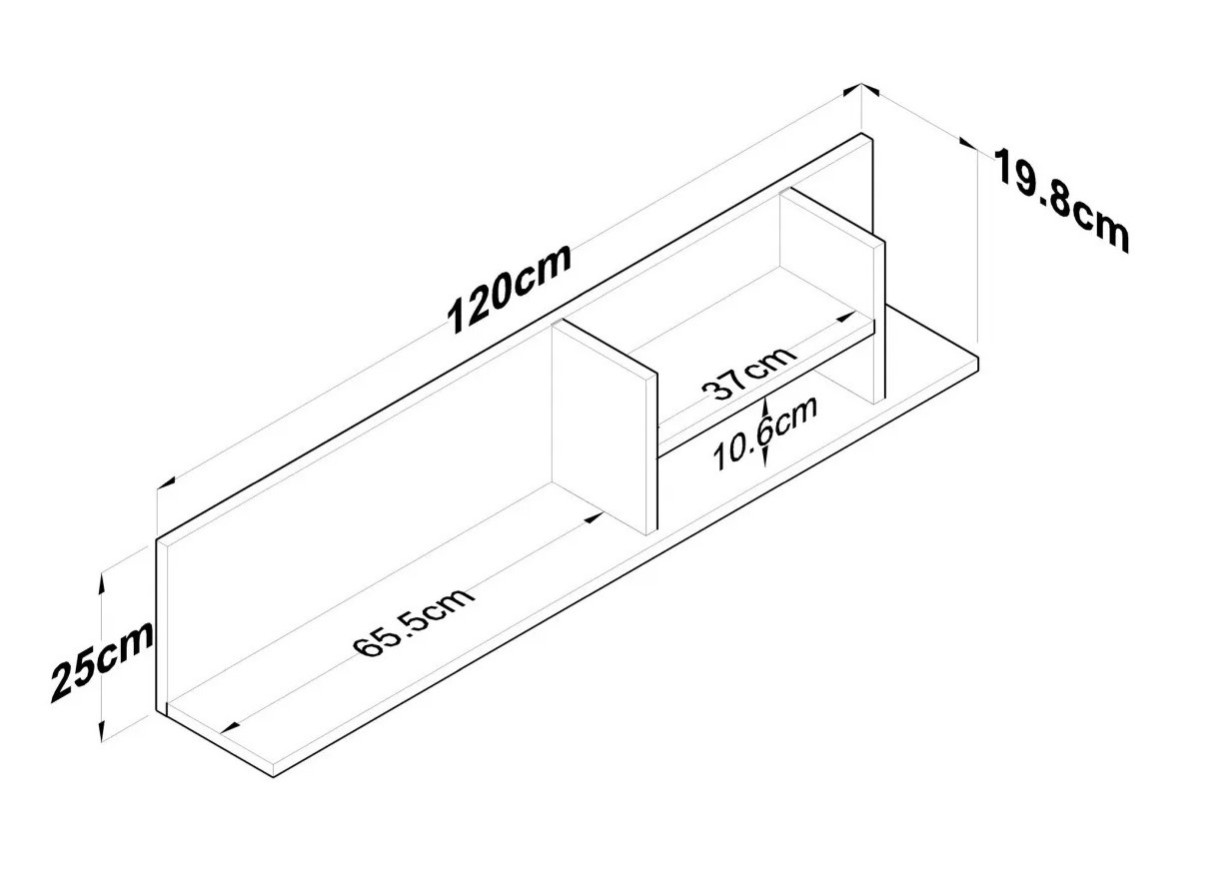 Размеры 120 см ширина, 25 см высота и 19,8 см глубина предоставляют достаточно места для книг, фотографий или декоративных предметов, позволяя создать персонализированную и элегантную композицию.