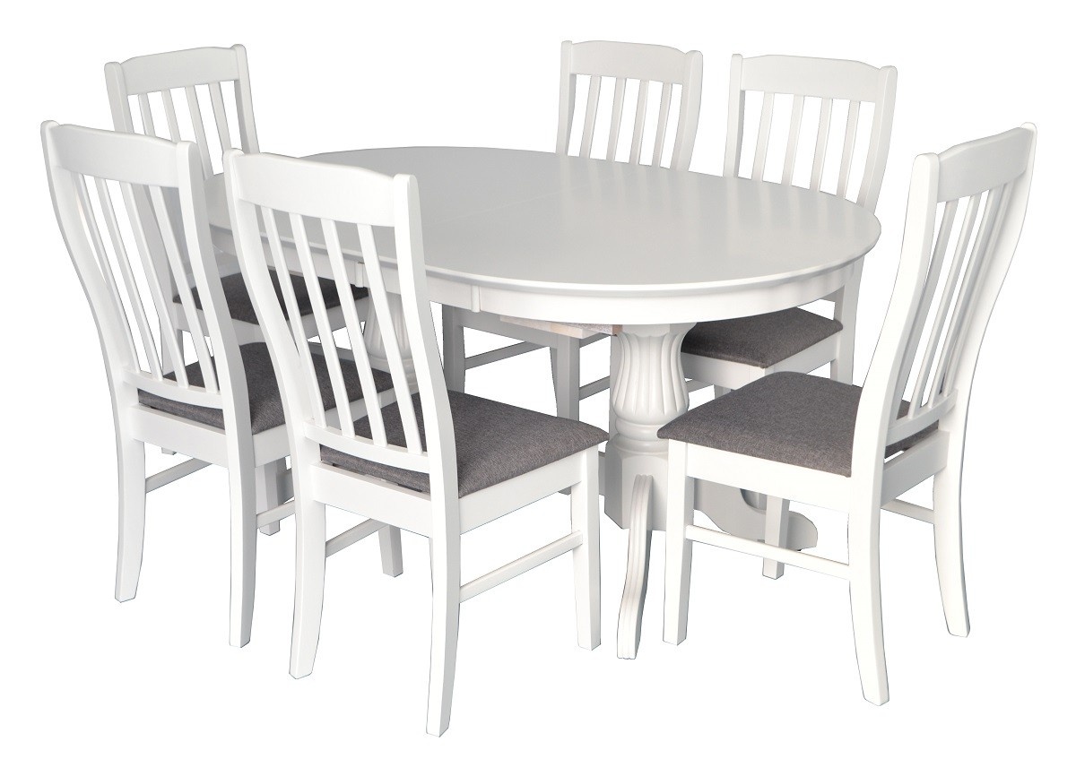 Комплект для столовой Evelin HV-33V White + 6 стульев Wenyl White/NV-10WP Grey