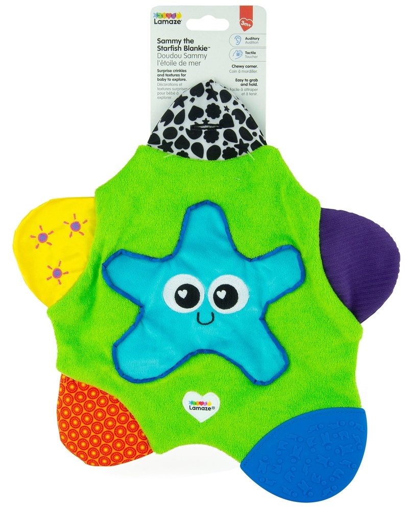 Мягкая игрушка в виде морской звезды имеет яркие цвета и прорезыватели. Игрушка изготовлена из безопасных материалов, что делает ее пригодной для игры даже детям первого месяца жизни.