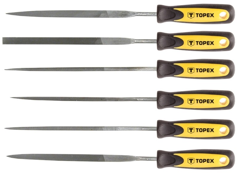 Набор надфилей по металлу TOPEX 06A010 практичен и удобен в использовании. Отлично подходит для точного шлифования металла. Надфили шести универсальных форм универсальны в применении. Двухкомпонентная рукоятка эргономичной формы удобно располагается в руке и обеспечивает комфортную работу.