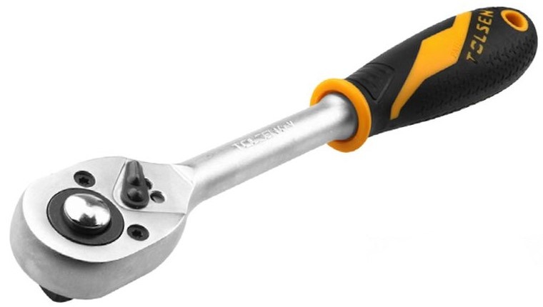 Трещетка Tolsen подходит для головок с квадратом в 1/2″. Трещетка предназначена для работы с гайками и болтами. Без особых усилий, прилагаемых на рукоятку вы можете как откручивать, так и закручивать гайки и болты.