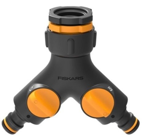Штуцер двухканальный Fiskars 1027061 предназначен для разветвления подачи воды в шланге при поливе. Соединяется с водопроводной трубой с внешней резьбой диаметром 1/2″, 3/4″ или 1″ и крепится к шлангам через соединители. Краны предоставляют возможность регулировать напор воды в линиях.