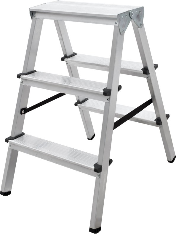 Ступени с двух сторон позволяют работать, не переставляя стремянку.