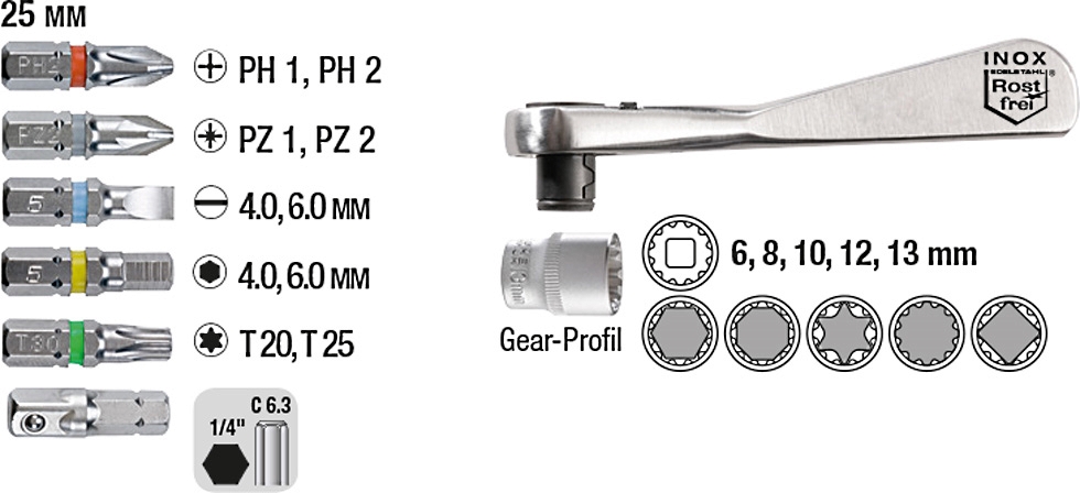 Тип бит4, 6, PH1, PH2, PZ1, PZ2, T20, T25