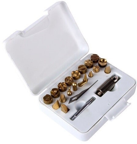 Набор: паяльник-выжигатель, 21 насадка 220В 20/50Вт REXANT ZD-725B 12-0187 — оптимальный вариант для использования в домашних мастерских. В комплекте представлено несколько различных форм насадок, которые надежно фиксируются к паяльной ручке при помощи винта. Каждая насадка позволит создать неповторимый, оригинальный рисунок при обработке деревянных и пластмассовых изделий, а также поверхностей, обтянутых кожей.
