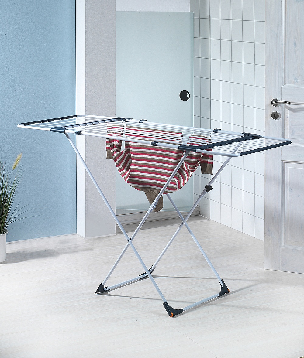 Сушилка напольная AXENTIA для белья, полотно из алюминия, каркас из стали с порошковым покрытием.Удобная компактная напольная сушилка с выдвигающимися крыльями система ТЕЛЕСКОП.За счет оригинальной конструкции полотно сделано из толстых прутьев, что не даёт белью сминаться.Общая рабочая длина 20 погонных метров и рассчитана на вес белья 15 кг.Раскрыть сушилку: легко достаточно выдвинуть боковые крылья.Специальные колесики для перемещения по ванной комнате и пластиковые ограничители на ножках, чтобы не царапать пол.Легкая и безопасная сборка, за что присвоен сертификат от мирового лидера в области независимой экспертизы TUV.