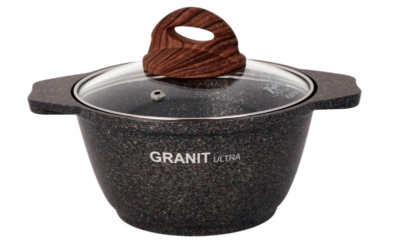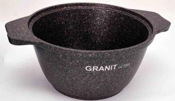 Кастрюля "Kukmara" изготовлена из литого алюминия и покрыта уникальным ультрапрочным антипригарным покрытием «Ultra granit».