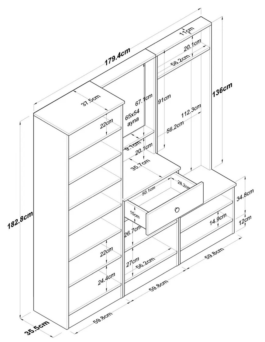 Прихожая Trendy M2 1558 White 182.8x179.4x35.5cm GTR001426