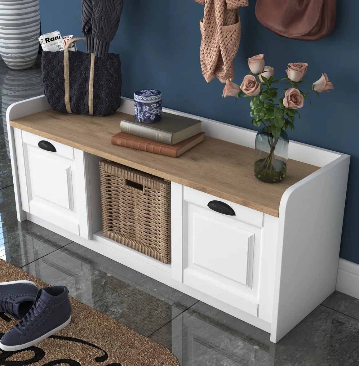 Вместительный шкаф и несколько полок обеспечивают удобное размещение необходимых вещей. Ключи, письма и другие предметы легко держать в порядке и в быстром доступе. Центральная полка шириной 38.3 см создаёт дополнительные возможности для хранения небольших вещей.