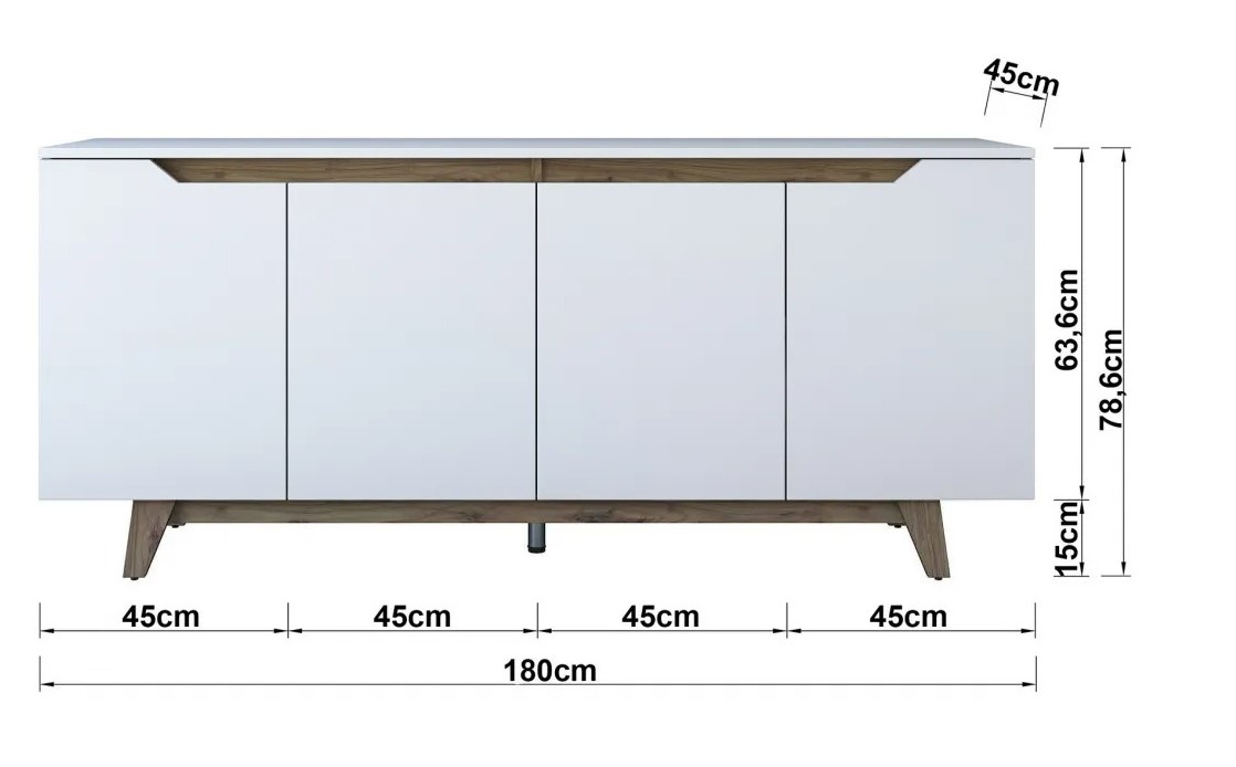 Тумба Trendy GD102 1874 White/Walnut 180x78x45cm GTR001224